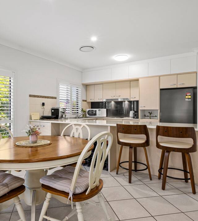 Spacious and comfortable 3-bedroom unit, complete with an ensuite, double garage, and a private rear courtyard area that is mostly covered. Improvements include, Solar power 6.6 Kilowatt panels ând a 5 Kilowatt inverter battery capable, Solar hot water, Plantation shutters, Crimsafe security screens, Ducted air conditioning, Atrium vergola - with rain sensor, Renovation of laundry, Additional storage cabinets in kitchen, garage and bedroom 3, Outdoor patio blinds, Security cameras - Villa entrances and exclusive use areas. The office is conveniently located in the community centre and operates under occupational authority.